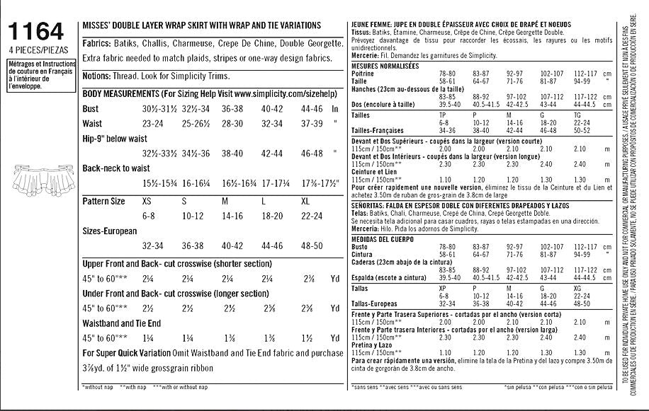 - Simplicity 1164 Dress and Skirt sewing pattern